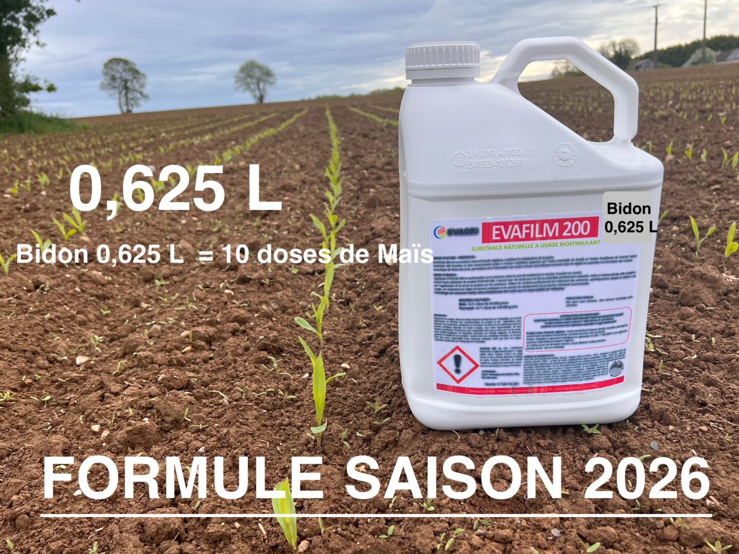 0,625 litre d’EVAFILM 200.26 + 50 ml d’EVA’BORENS = 0,675 Litre de solution finale qui représente un enrobage de 10 à 11 doses de 15 kg de maïs